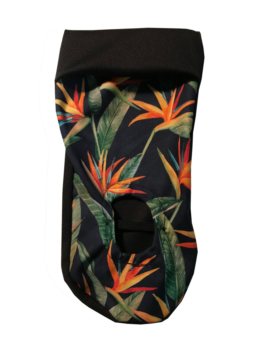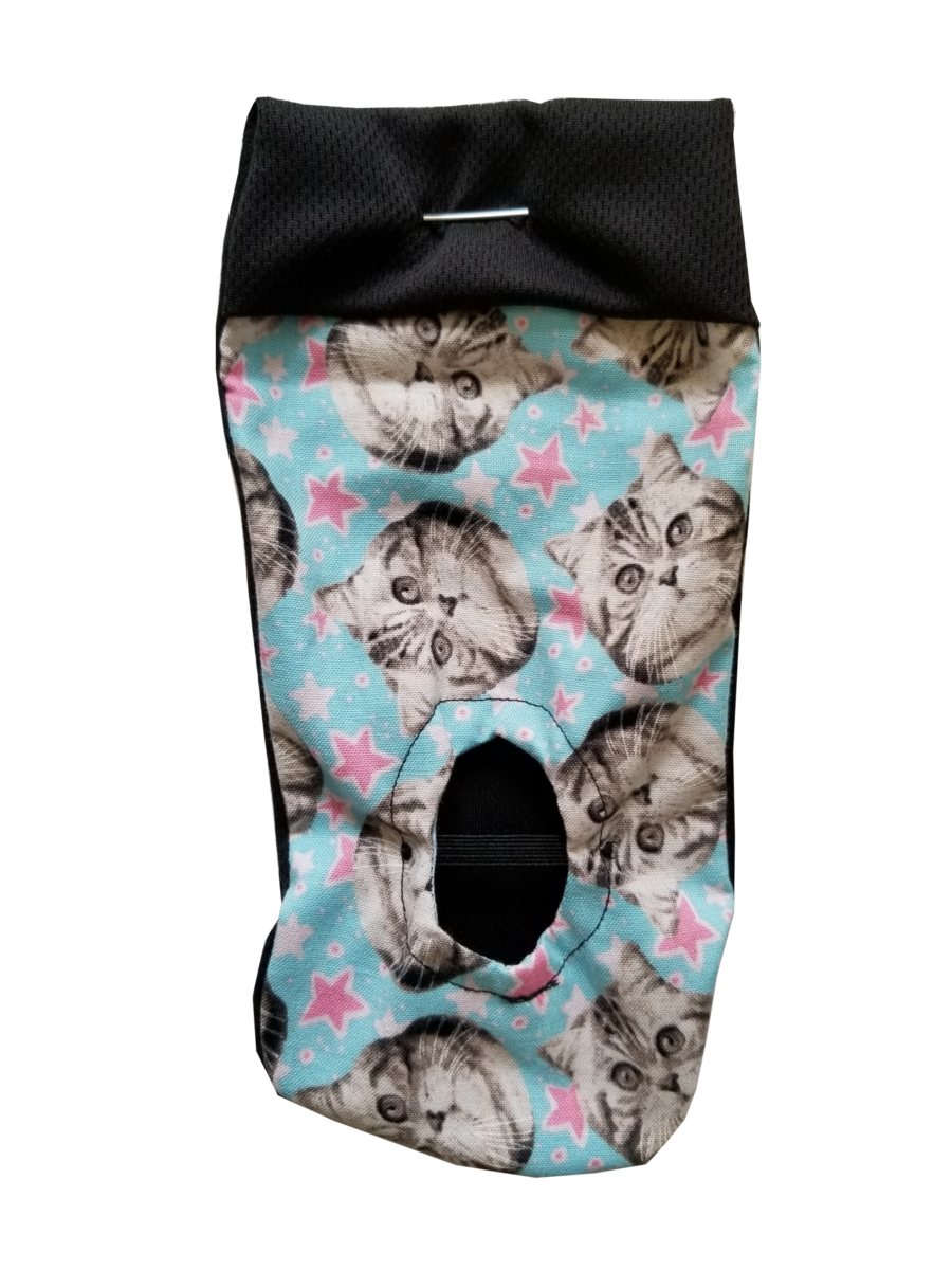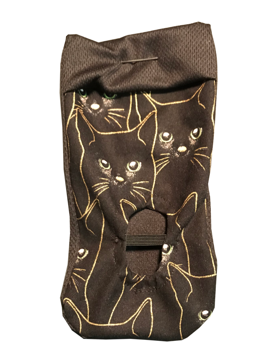 Cotton front, polyester-cotton lining. Back of antimicrobial, moisture-wicking polyester. The model without holes has a mesh lining that provides additional support. Fastening with a safety pin.