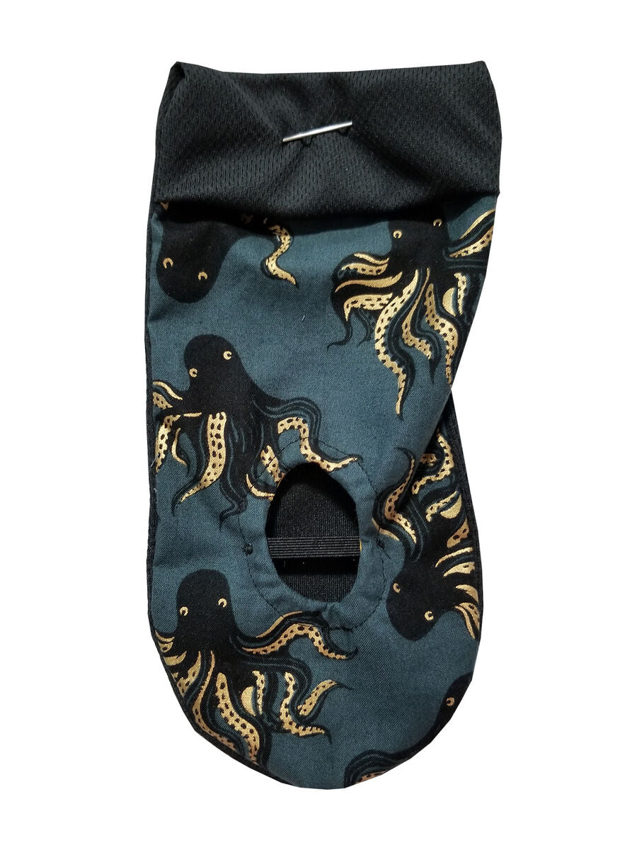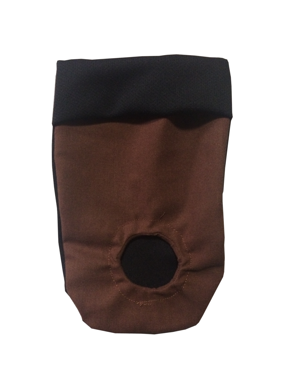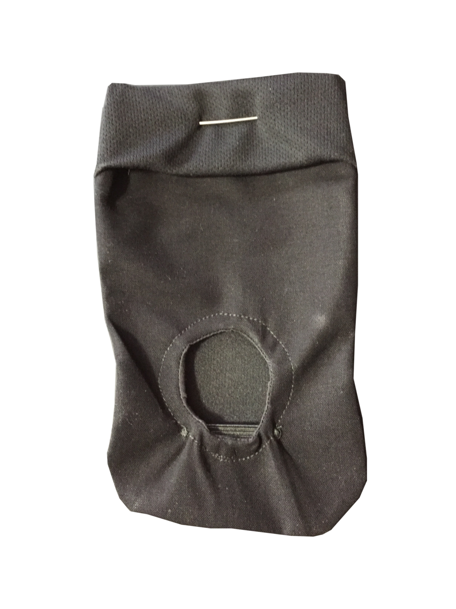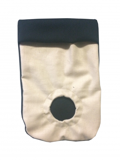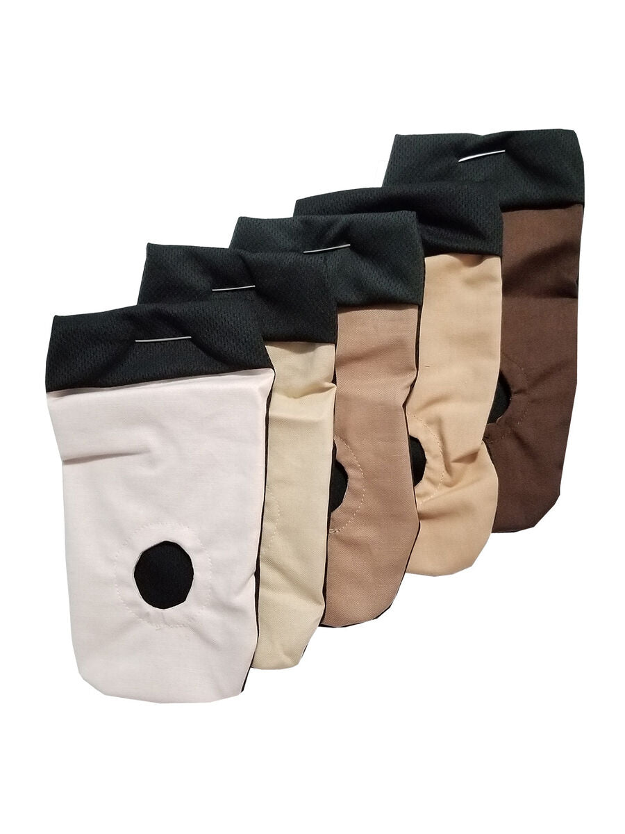 Cotton front, polyester-cotton lining. Back of antimicrobial, moisture-wicking polyester. The hole is inflexible. Fastening with a safety pin.