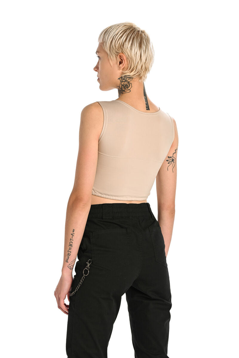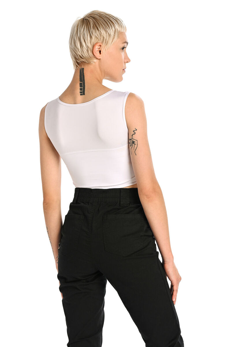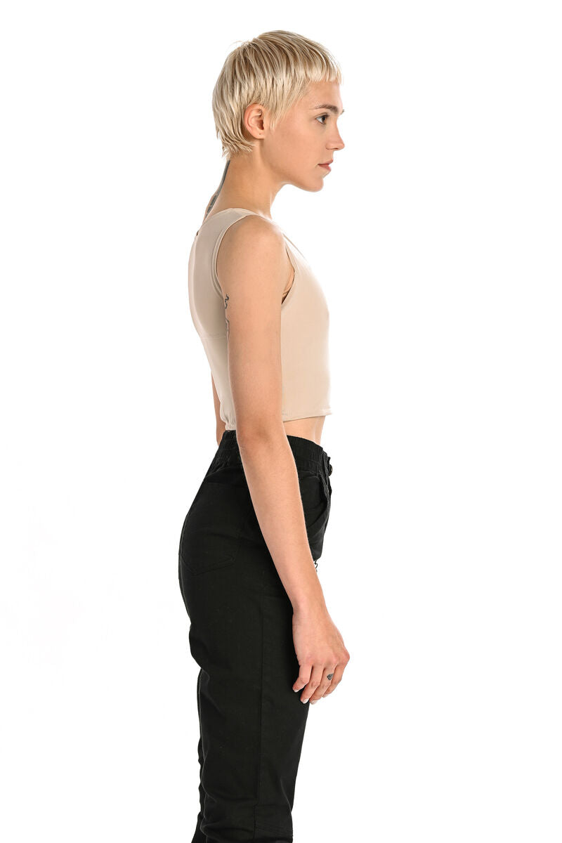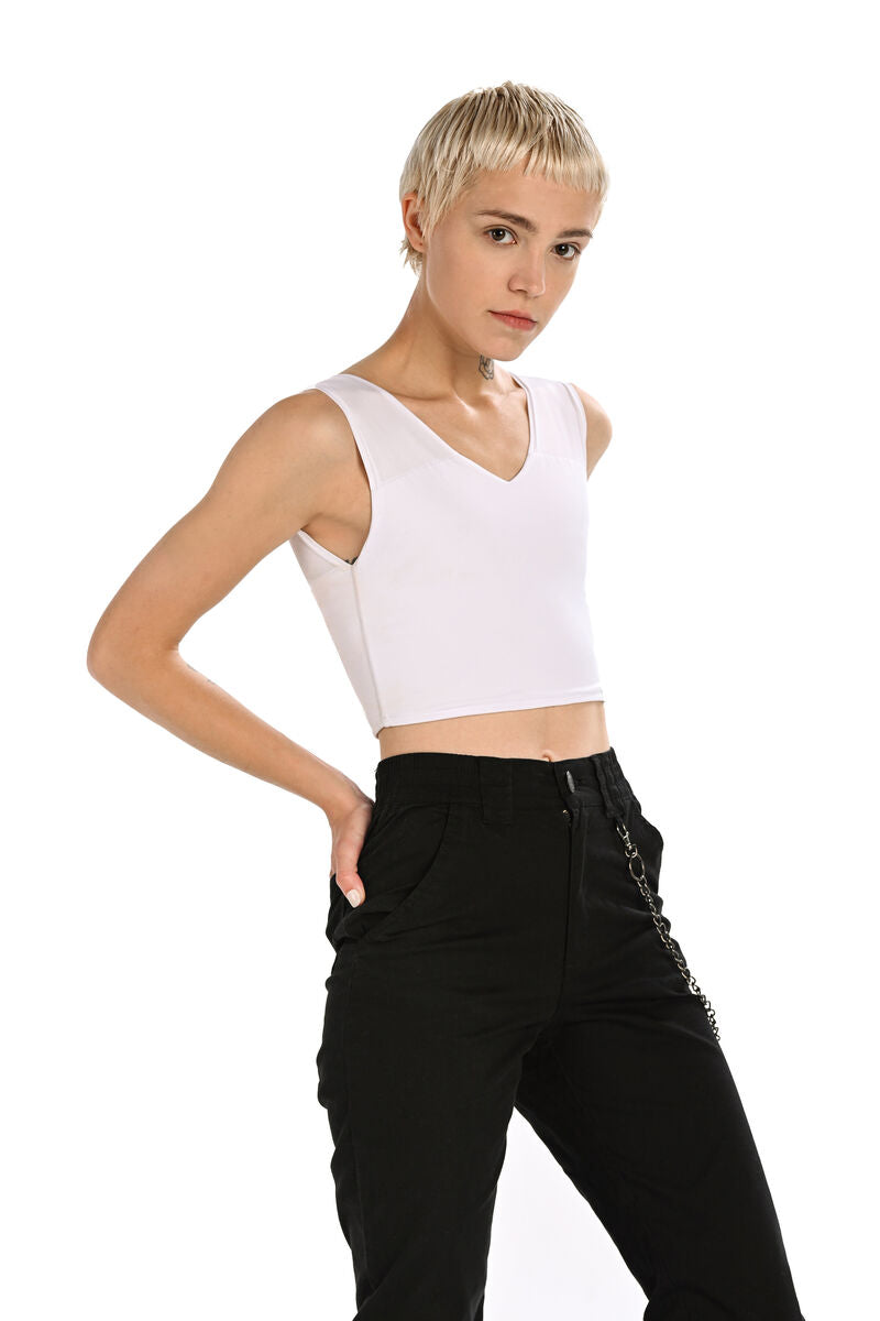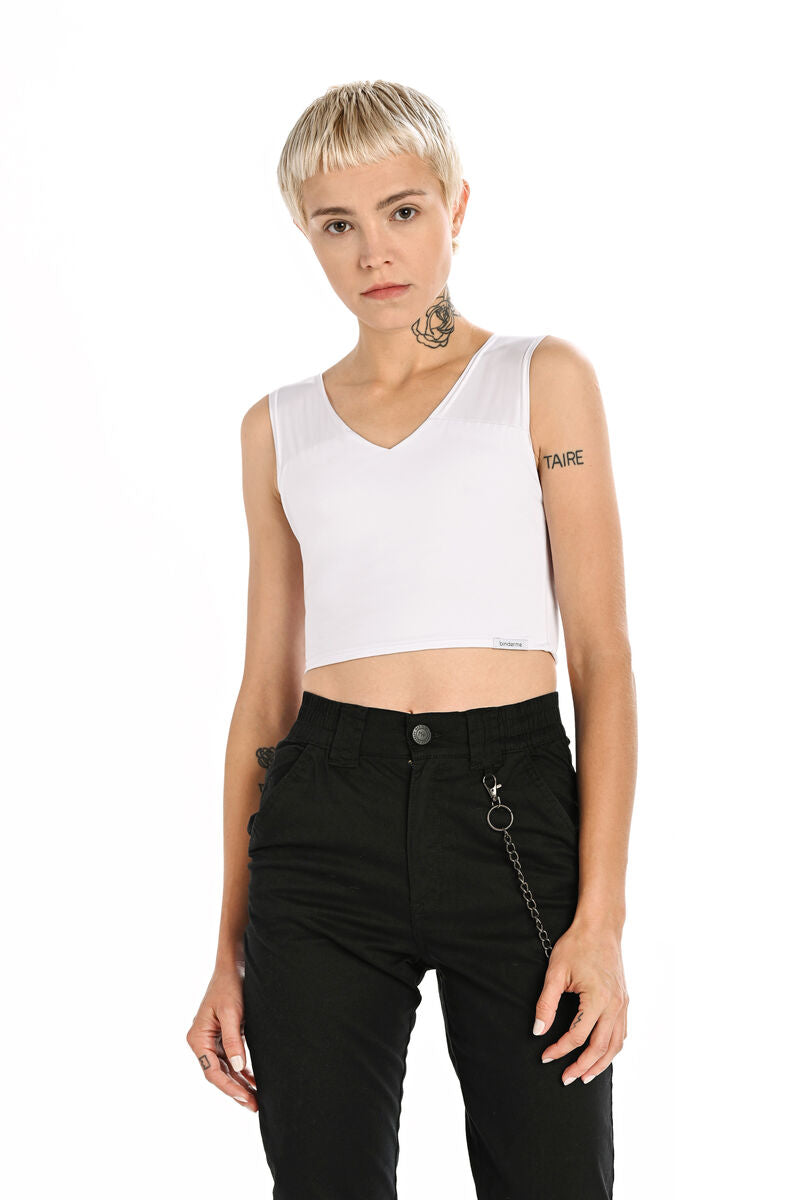 Binderme Basic Binder for daily use. Flattens the chest effectively and comfortably. The handmade binder has a 100% cotton reinforcement to flatten the chest. The material of the outer part is comfortable and breathable lycra. The V-shaped neckline and high armpit cut guarantee a comfortable and effective binding result. A comfortable and breathable binder is also suitable for a faster life.