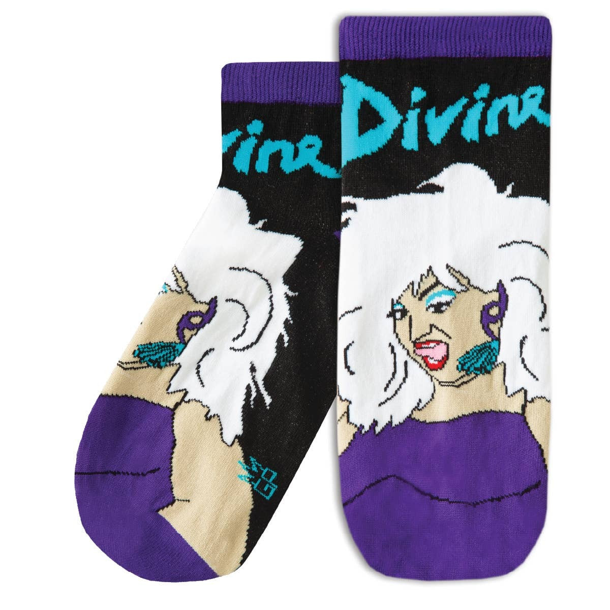 These stemless socks are decorated by the undisputed queen of drag, Divine.