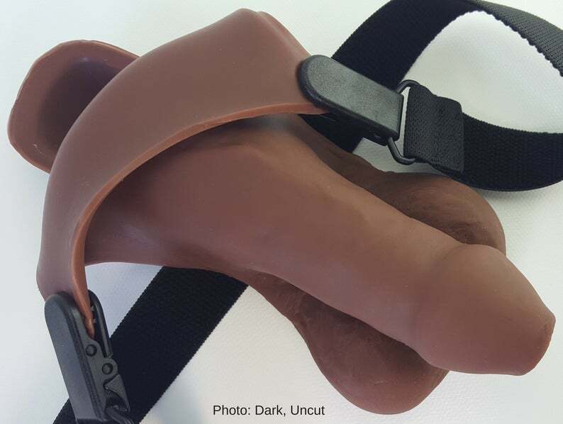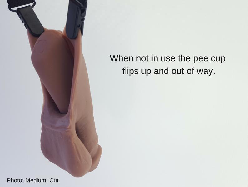 This clever Flip-N-Tuck STP device solves the "freezing problem" common to STP prostheses with a pioneering design. When used as a packer, the urethra of the prosthesis bends vertically against the prosthesis. When nature calls, you just turn the cup horizontally between the crotch and that's it!