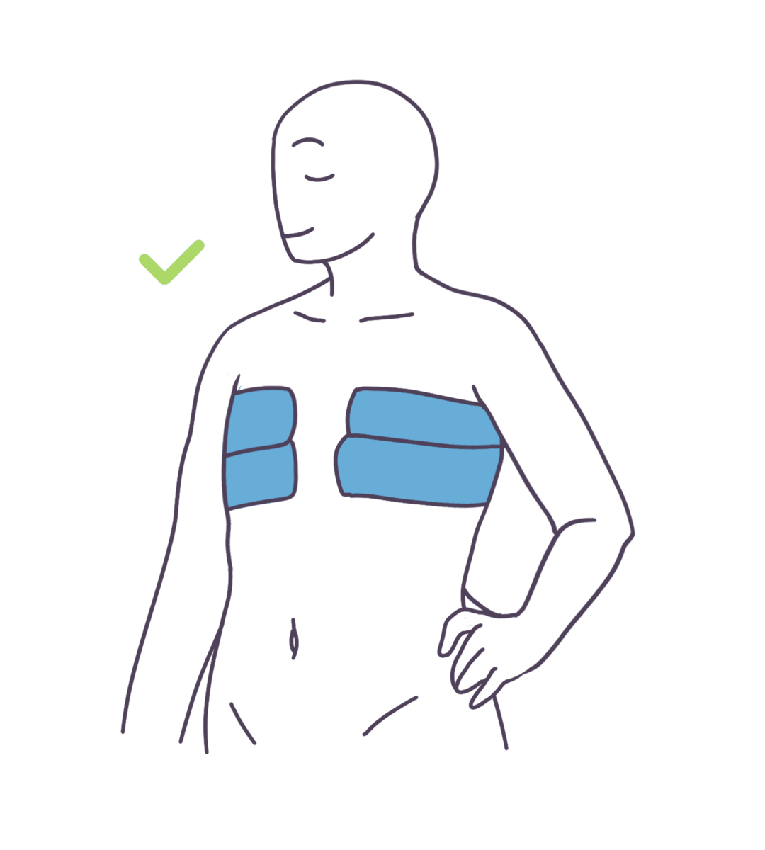 Before taping, remove hair from the area to be taped. Protect sensitive body parts, such as the nipples or the head and shaft of the penis, for example with nipple shields, a folded bandage or a clean handkerchief. When you cut pieces of tape, it is recommended to round the edges so that the edges of the tape do not fray.