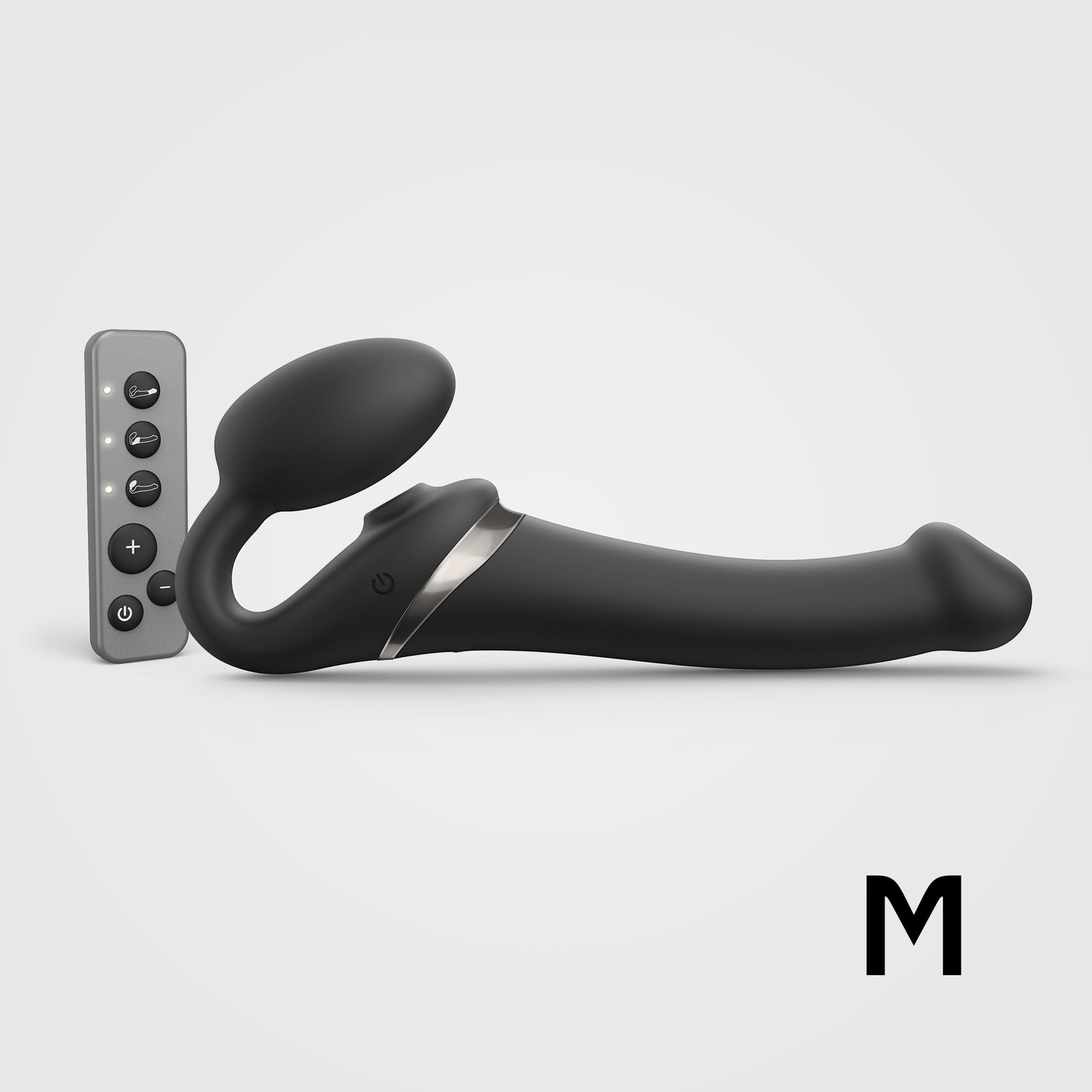 The shorter end is placed in the wearer's vagina, so the strap stays on as it is without a separate harness (although for faster games we recommend a harness for additional support). The suction vibrator comes against the wearer's external organs, giving the wearer pleasure.