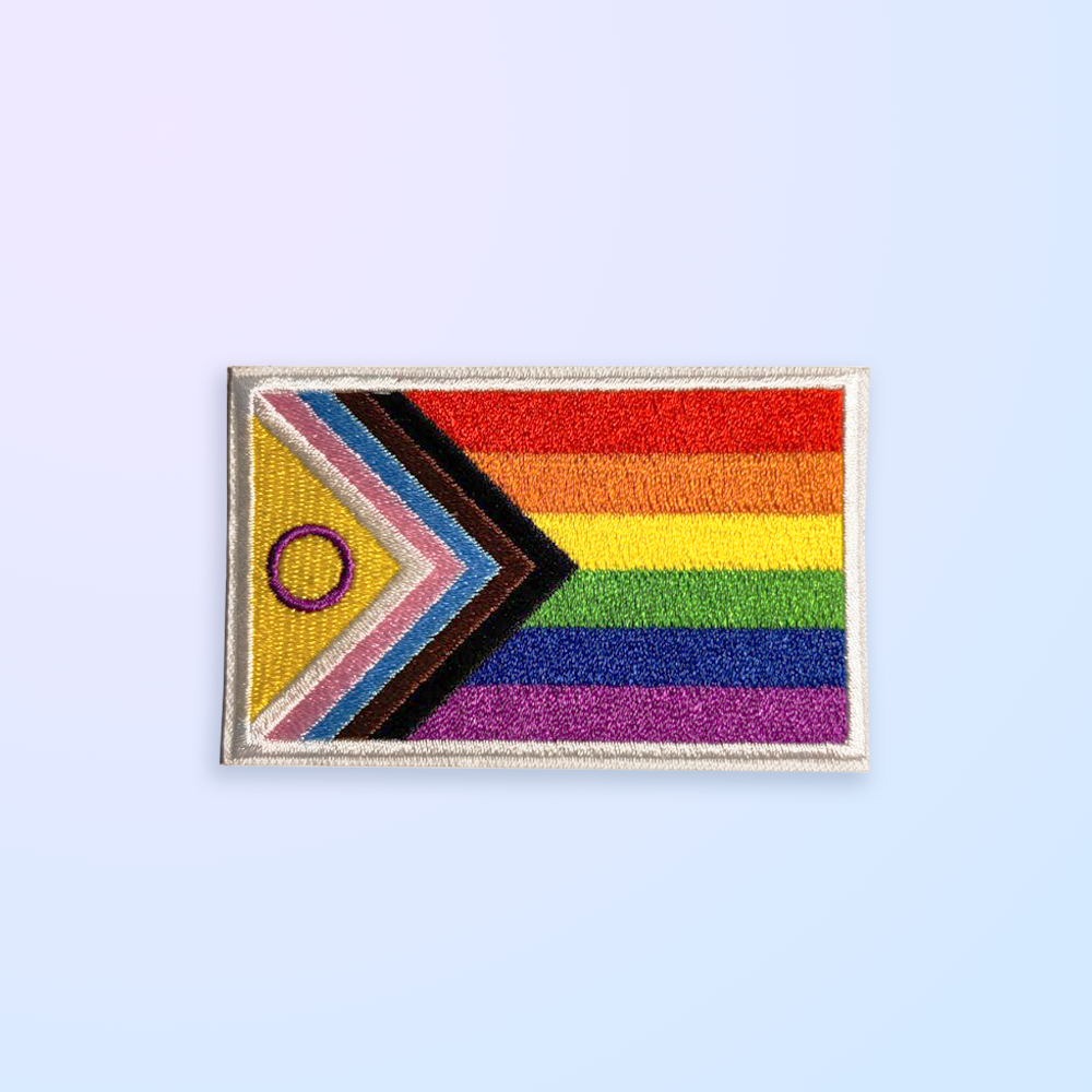 New Progress Pride -kangasmerkki koristamaan vaatteita, laukkua, hattua tai muita asusteita! Tämä merkki käy hyvin myös haalarimerkiksi opiskelijahaalariin.