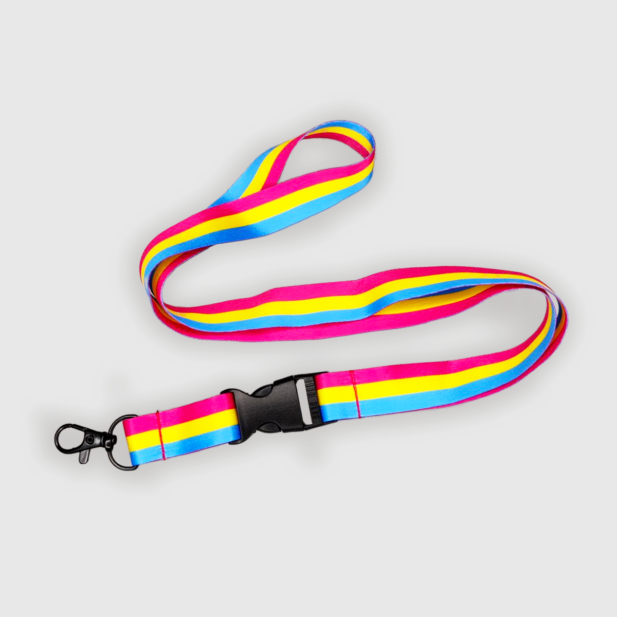 Handy Pansexual Pride key chain with clip. In addition to keys, it is well suited for carrying, for example, a name tag, an identification card or a walking stick. With the help of the clip, you can easily detach the end of the key lanyard, so you can use it without removing the lanyard itself from your neck.