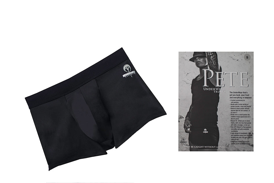 SpareParts HardWear's high-quality Pete packing underwear is specially designed for the use of the soft Packer. The short-legged boxer briefs are designed to fit especially transmasculine people. There is an open pocket in the front, which enables the use of STP prostheses effortlessly. Pete doesn't just want to be your friend, he wants to be your BFFAF or Best Friend Forever And Forever!