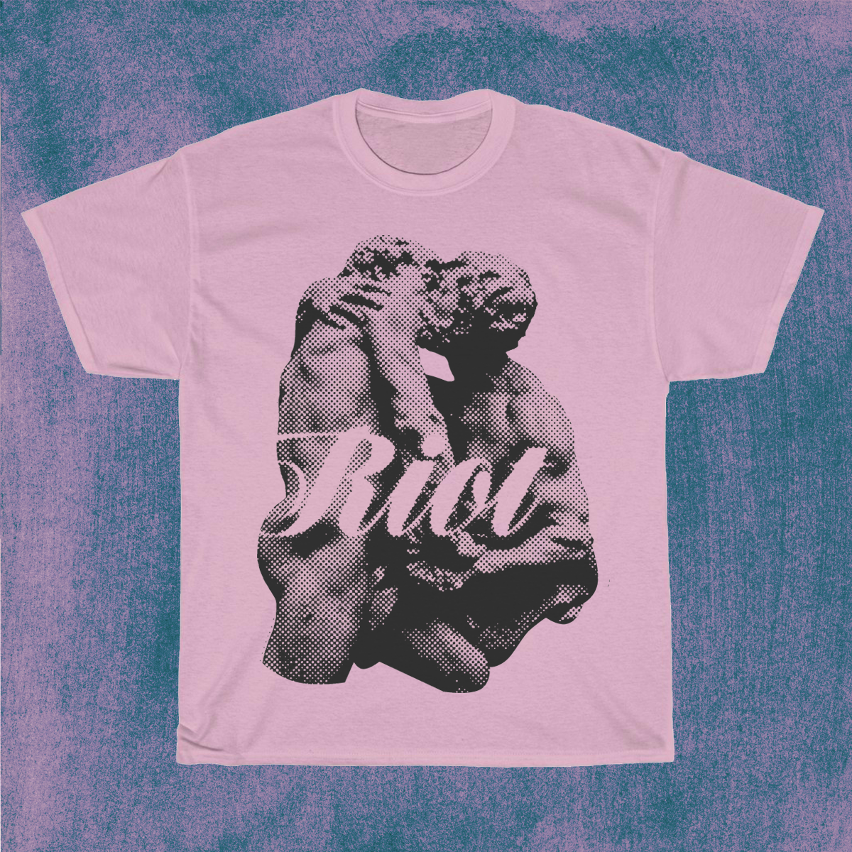 Rebel for queer rights in this gorgeous print shirt adorned with kissing marble statues and 'Riot' text.