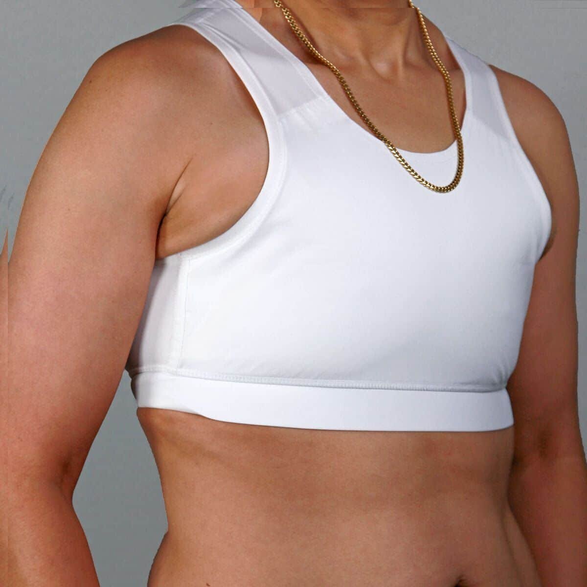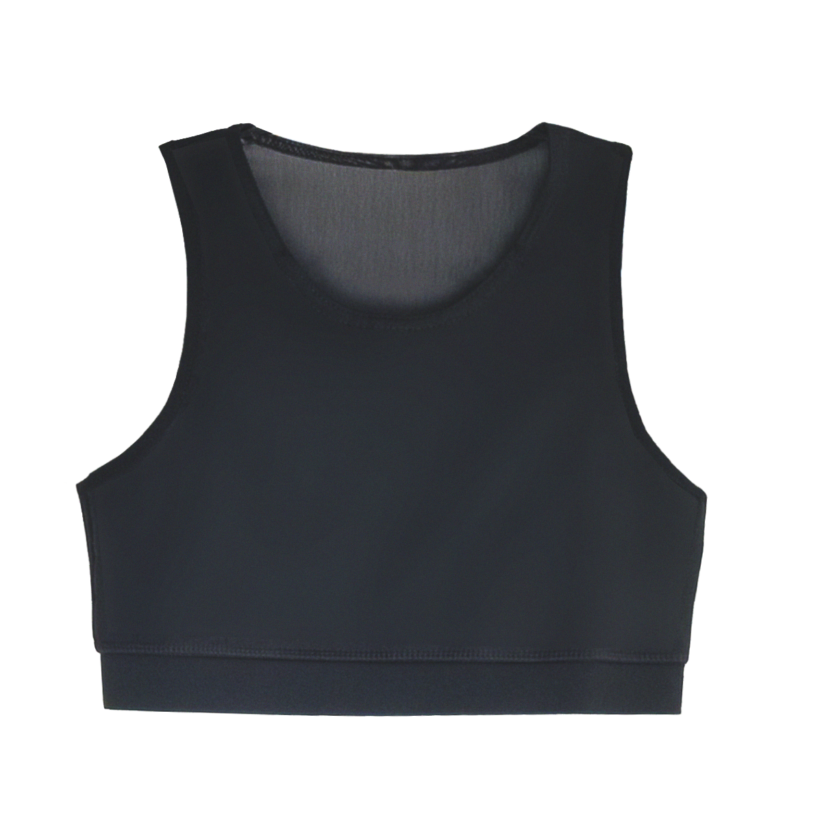 Sporty short binder with breathable back and elasticated rib. The mesh fabric on the back makes the binder very breathable, which makes it also great for an active lifestyle. The elastic band elastic on the hem keeps the Binder in place, and the hem does not roll up awkwardly during the day. The back part is flexible and the front part has a non-elastic, flattening lining.