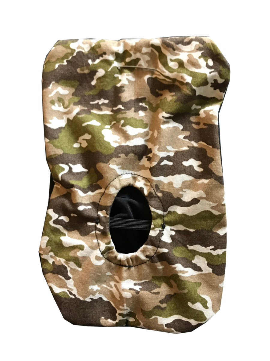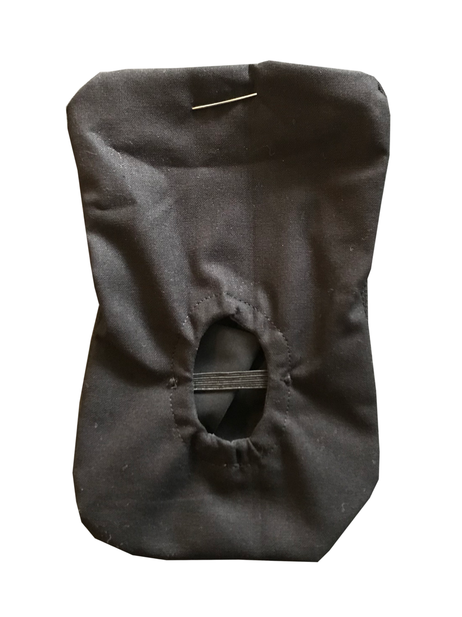 Cotton front, polyester-cotton lining. The back is made of antimicrobial, moisture-wicking polyester and elastic spandex cotton for easy opening. The hole is inflexible. Fastening with a safety pin.