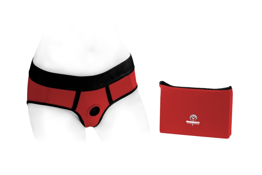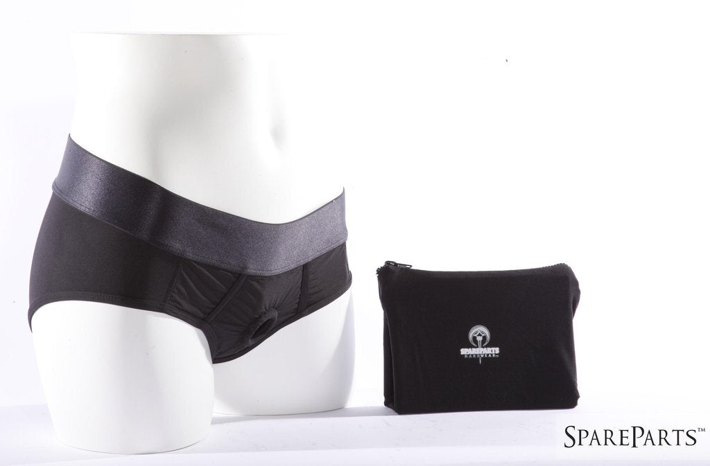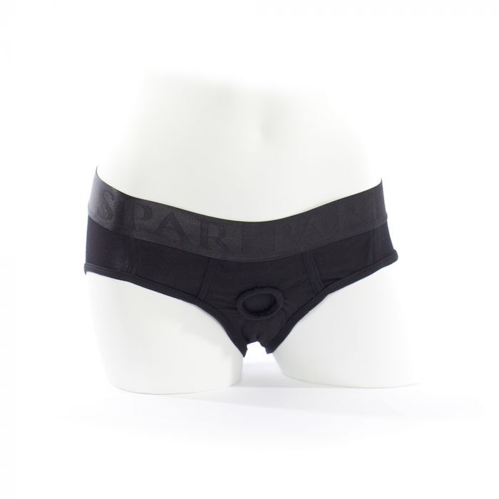 SpareParts HardWear's awesome Tomboi is now here! The brief-style pack&play-harness is great even for daily use. Moisture-wicking material guarantees comfort. Suitable for multi-sized prostheses and strap-ons; the flexible ring makes it easy to slide the prosthesis into place. Two built-in pockets for bullet vibrato.