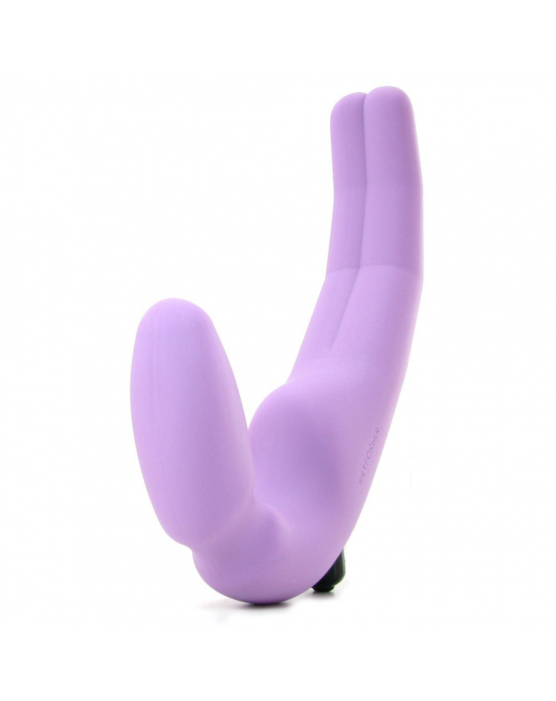 Who said a strap-on should always resemble a phallus? WetForHer has come to break expectations. Slide the Toy Four on and let it take you both to a new kind of heaven as the toy hits each of your G-spots in just the right way. The five different vibration levels of the bullet vibra crown the whole.